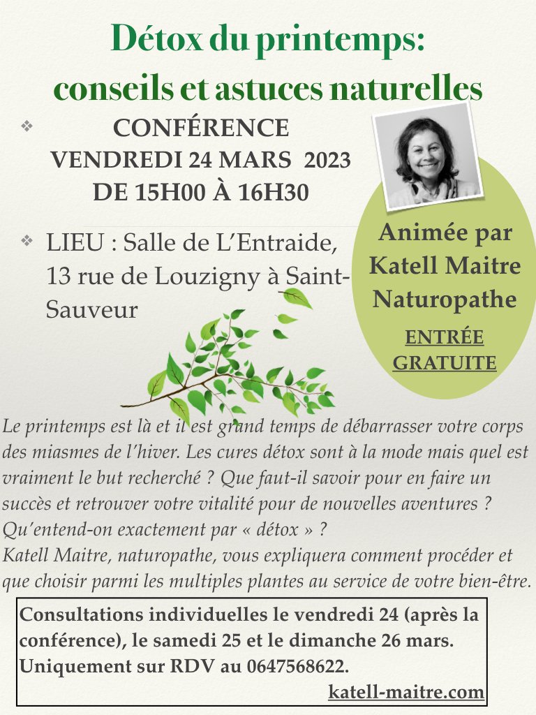 CONFÉRENCE : DÉTOX DU PRINTEMPS -Vendredi 24 mars 2023 (ile d'Yeu)